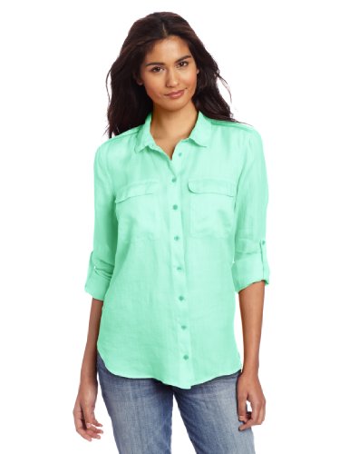> Calvin Klein Jeans Women's Casual Buttonfront, Dusty Green, Large