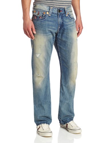 A classic straight leg jean features a traditional five pocket construction with stylish details in our Ricky bluestone and red color combo super t jean.